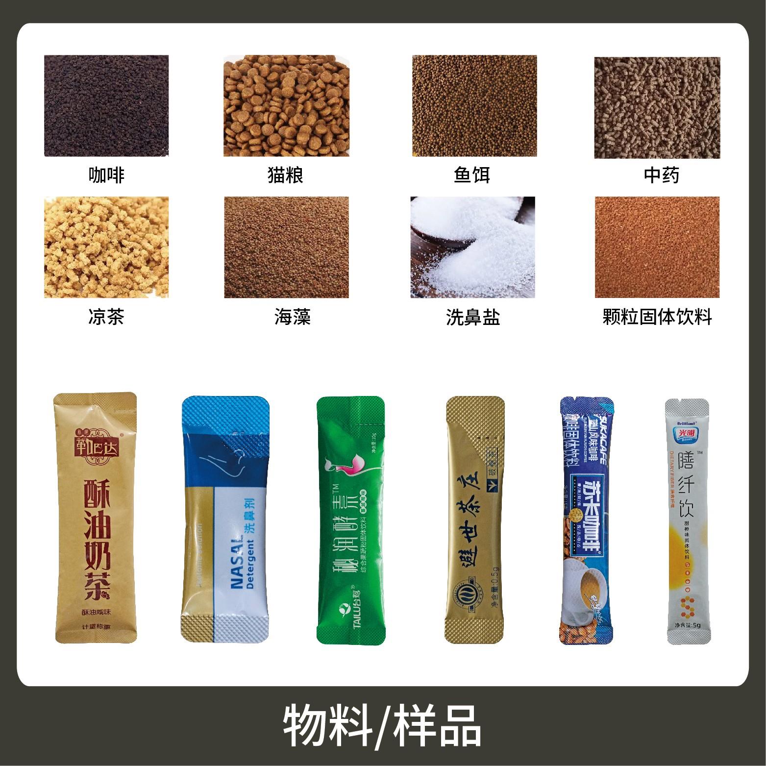 適用于食品、醫(yī)藥、化工、化妝品行業(yè)中顆粒物品的計(jì)量包裝,如:咖啡、保健品、營養(yǎng)品等。