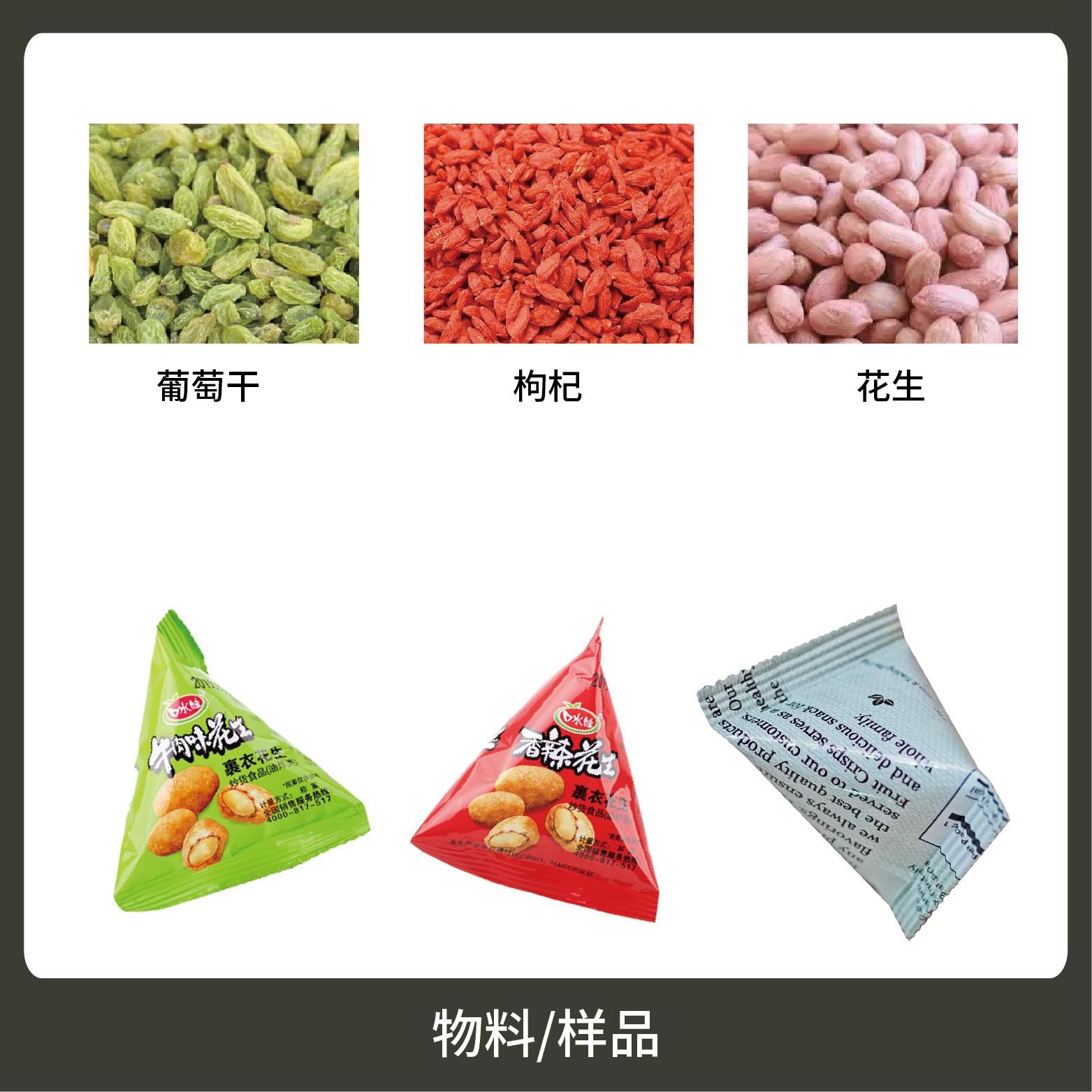 1、適用于食品、醫(yī)藥、化工、化妝品行業(yè)中顆粒物品的計量包裝,如:尖角脆、巧克力豆、qq糖等。