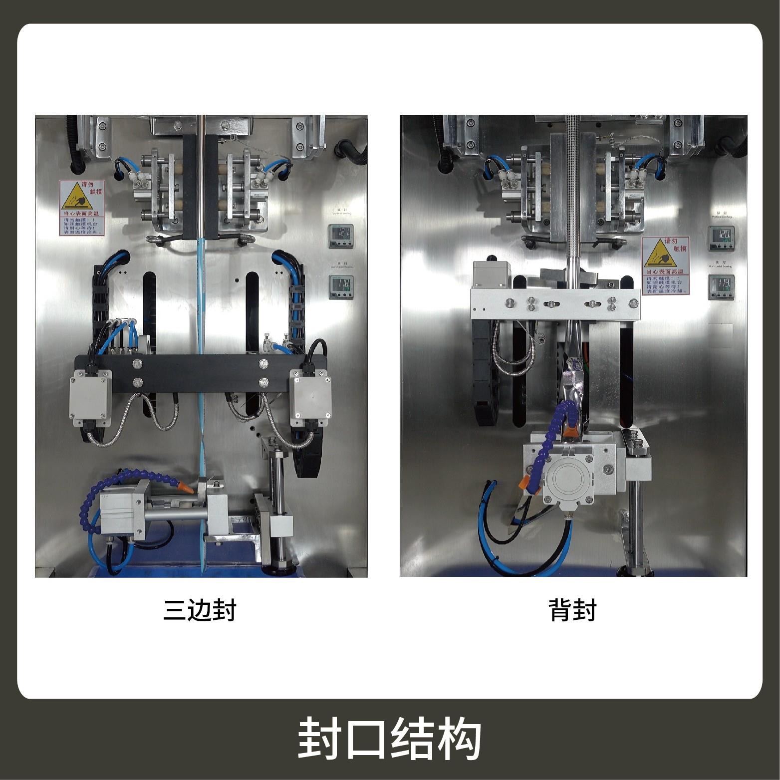3、觸摸屏操作,PLC 控制,驅(qū)動步進電機控制袋長,性能穩(wěn)定、調(diào)整方便、檢測準(zhǔn)確。智能式溫控儀,PID調(diào)節(jié),保證將溫度的誤差范圍控制在1℃以內(nèi)。